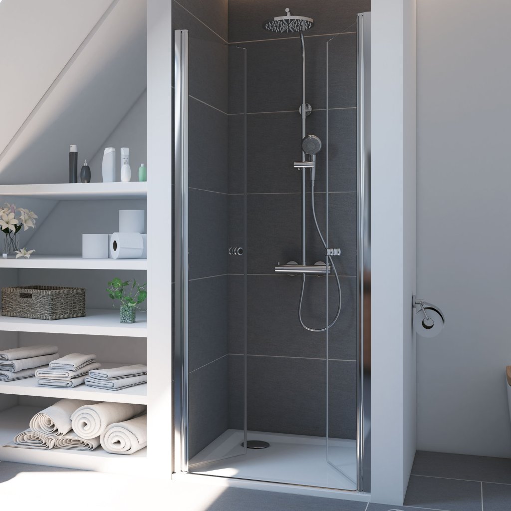 Elegantný a robustný rám sprchových dverí Vám zaručí stabilitu a pevnosť sprchových dverí. Rámu je vyrobený z eloxovaného hliníka s efektom lesklého chrómu, ktorý dosahuje vlastnosti výbornej leštiteľnosti a protikoróznej odolnosti. Hrúbka skla je 6mm. Sklo je tvrdené bezpečnostné s povrchovou úpravou pre ľahšie umývanie. Tieto sprchové dvere disponujú zdvíhacím pántom pre ľahšie otváranie.