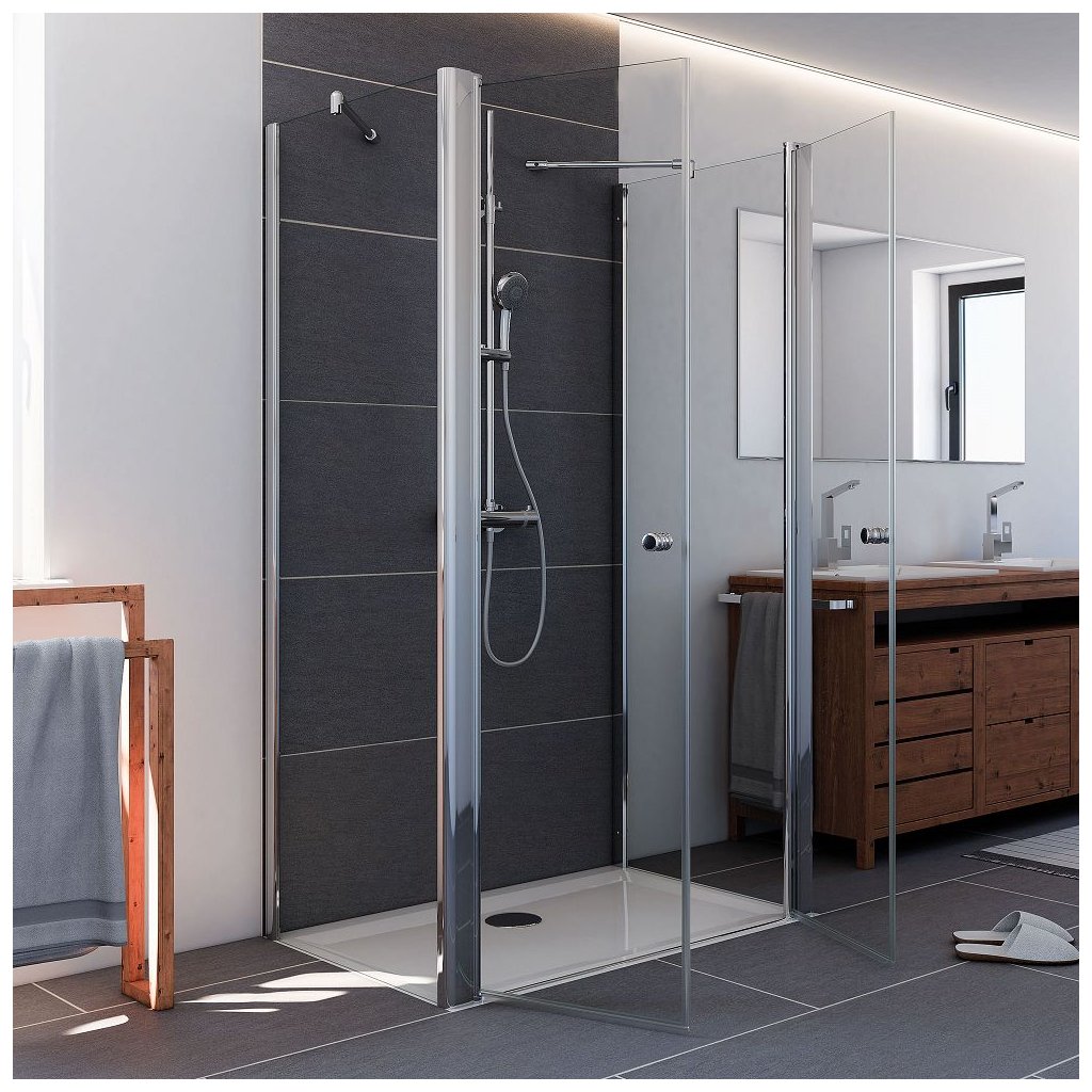 Orientácia otvárania je ľubovolná. Sprchové dvere sa otvárajú do priestoru Vašej kúpeľne, ale aj do vnútra sprchového priestoru.