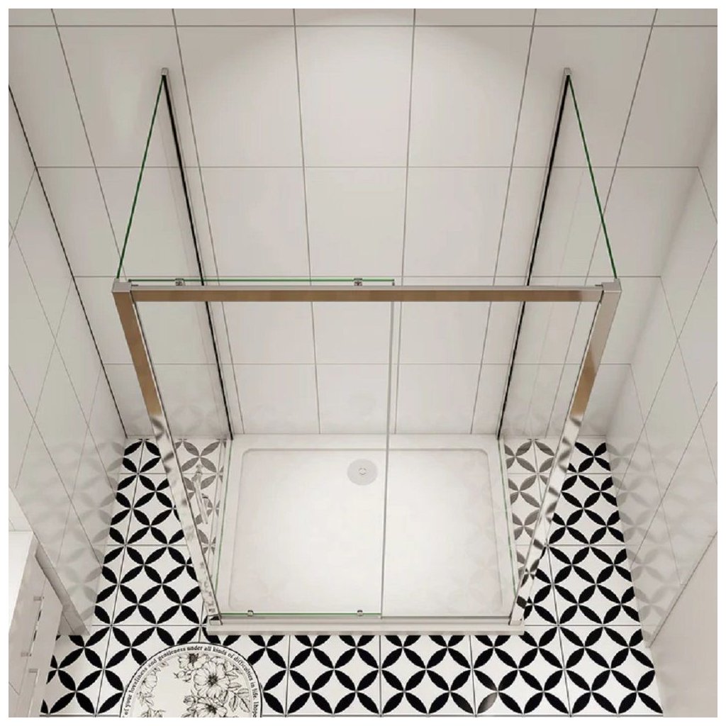 Sklo sprchovej zásteny je zhotovené z bezpečnostného transparentného skla s hrúbkou 6 mm, ktoré je vsadené do lešteného hliníkového rámu s povrchovou úpravou chrómu v lesklom prevedení a uzatváranie dverí je na magnetický spôsob.