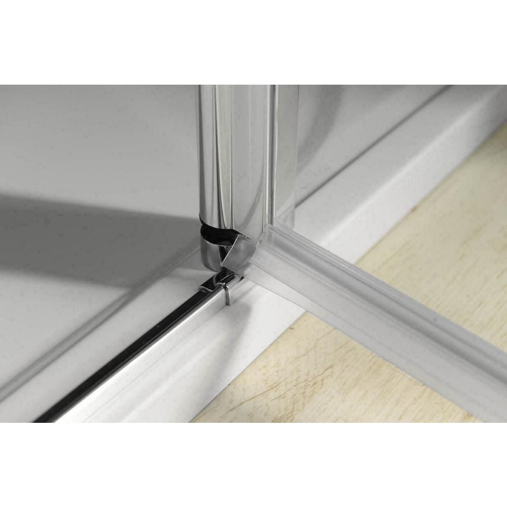 Samotnú výplň dverí tvorí tvrdené bezpečnostné sklo s hrúbkou 6 mm. Číre sklo je po bočných stranách vsadené do elegantného rámu z eloxovaného hliníka s efektom lesklého chrómu, ktorý dosahuje vlastnosti výbornej leštiteľnosti a protikoróznej odolnosti.