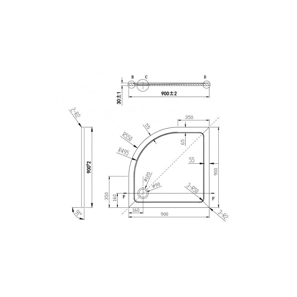 Štvrťkruhová sprchová vanička z liateho mramoru Sanovo STAR 90x90x3 cm